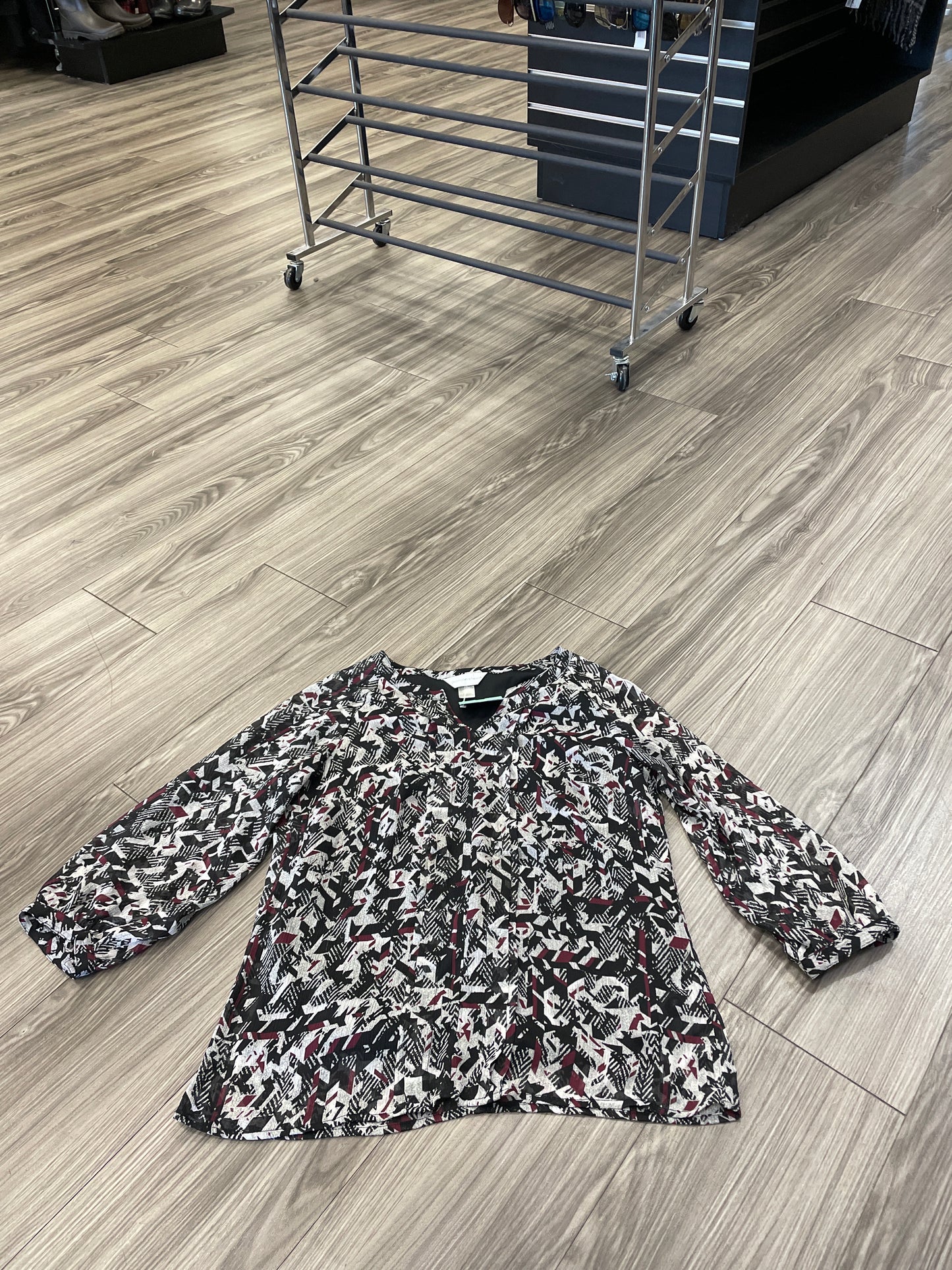 Blouse 3/4 Sleeve By Christopher And Banks In Black & Grey, Size: S