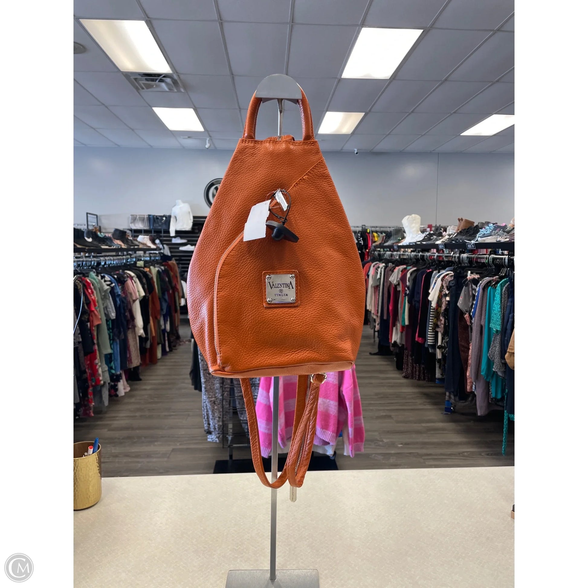 Handbag Leather By Valentina, Size: Medium