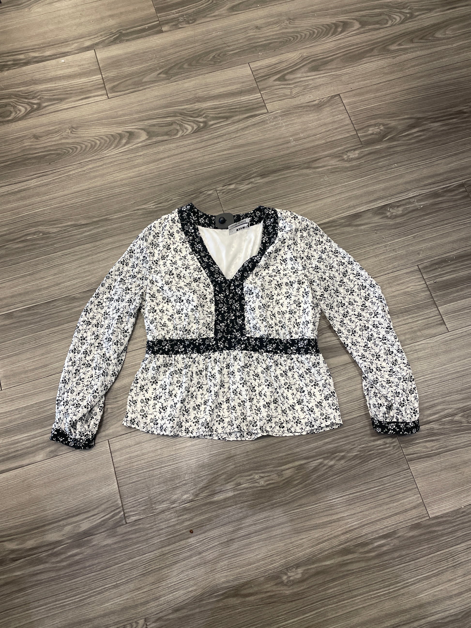 Top Long Sleeve By Madewell In Black & White, Size: M